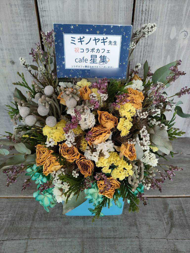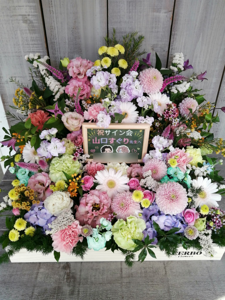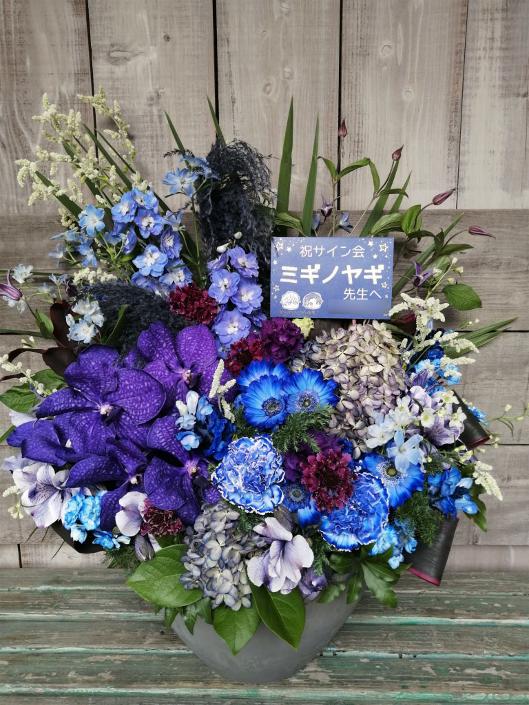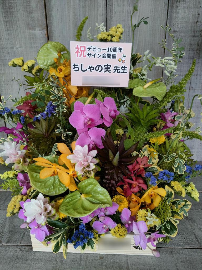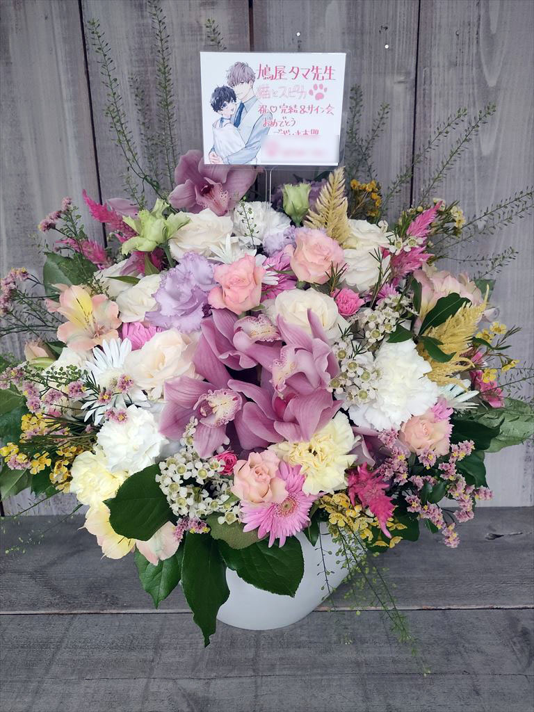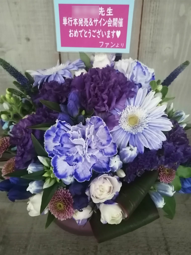 当店では、漫画家先生のサイン会・出版記念イベント・書店特設会場などへ贈るアレンジメント、ボックスフラワー を多数制作しています。