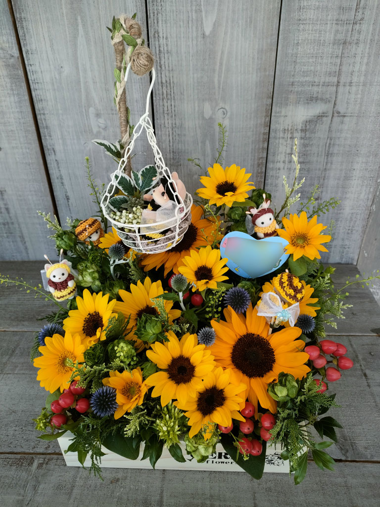 オリジナル木製ボックスフラワー