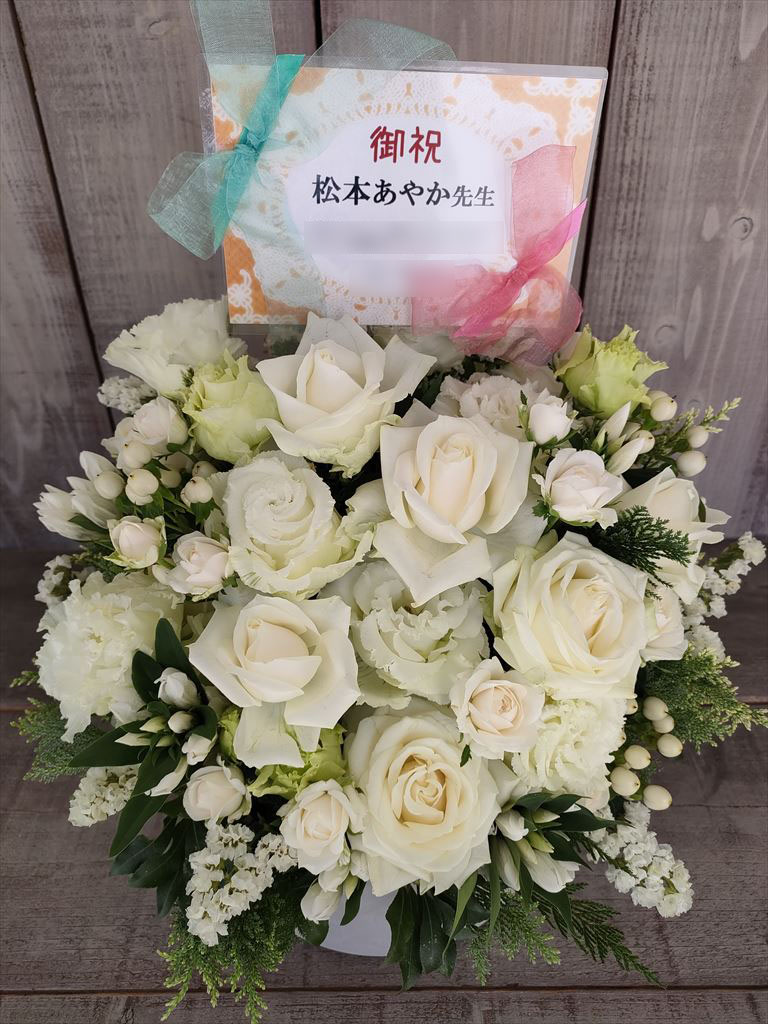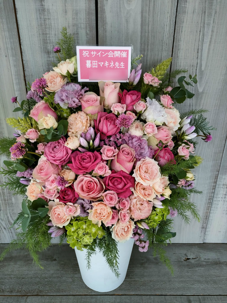 サイン会向けの花ギフトでは、お客様が作成の札やメッセージカードにも対応可能です。