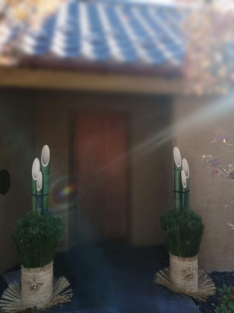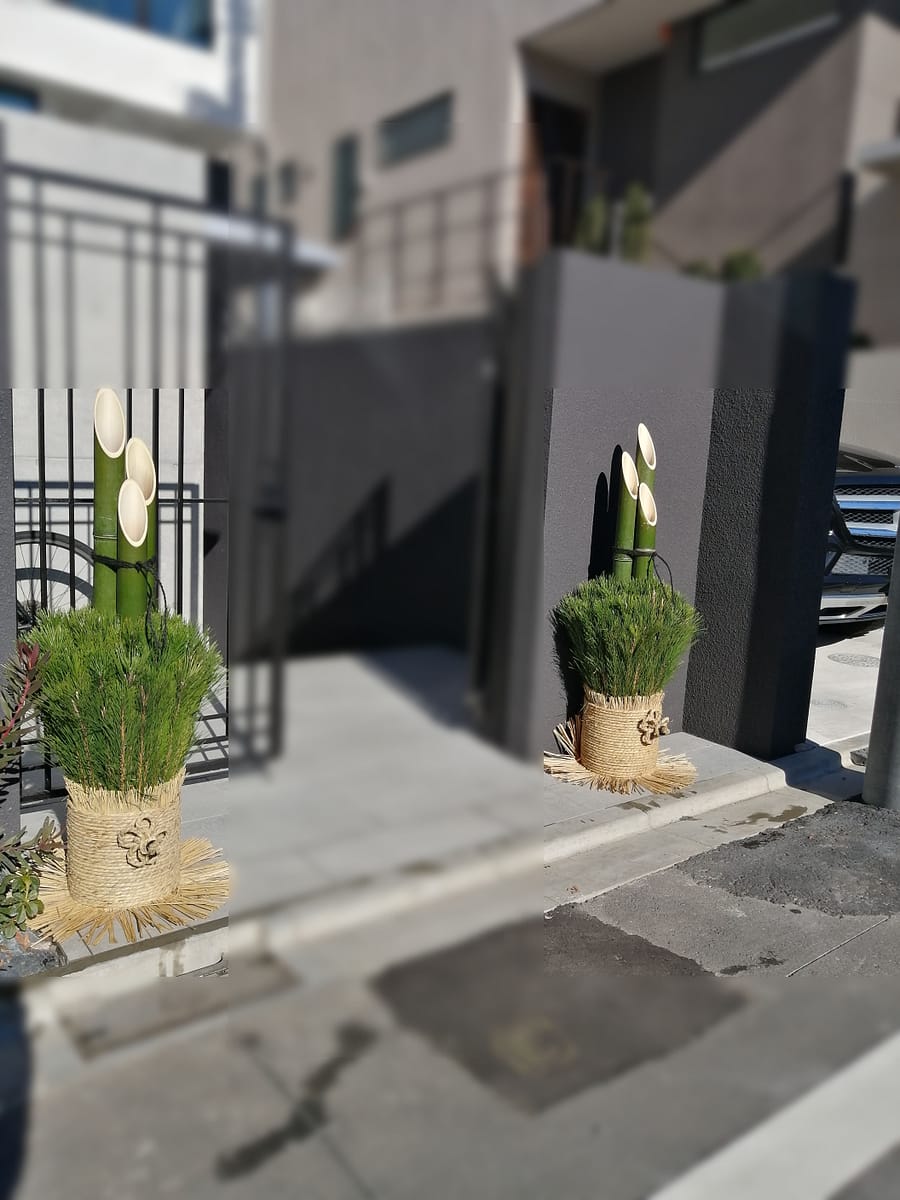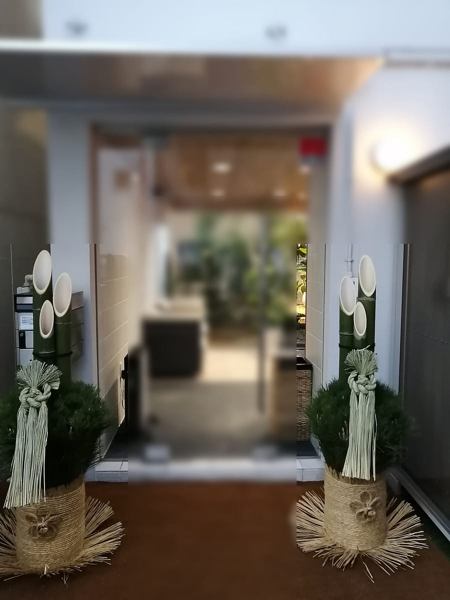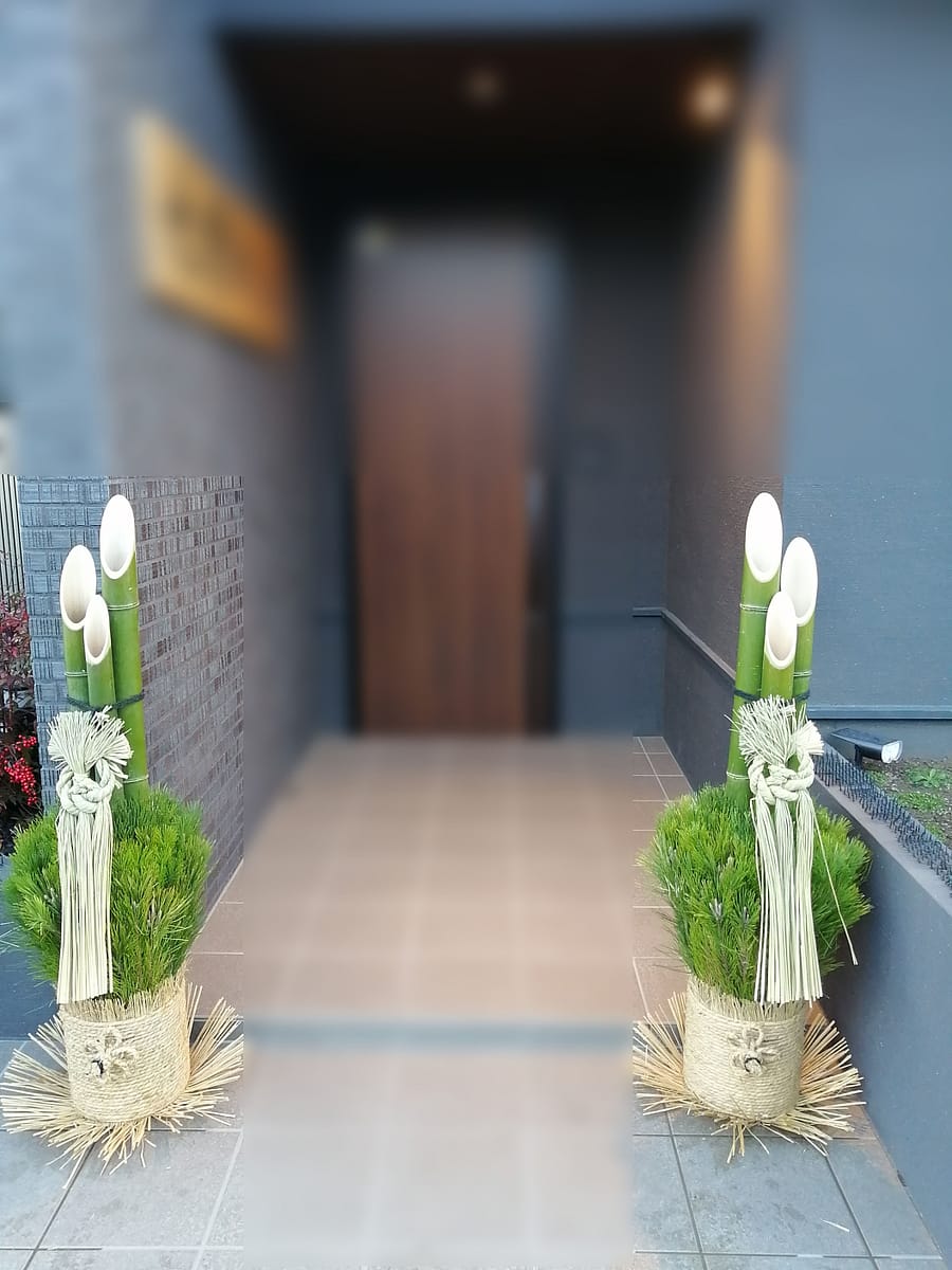 会社やお店のエントランス、マンション玄関、一戸建て住宅、相撲部屋、公共機関建物【門松の飾り方(左右の置き方)】