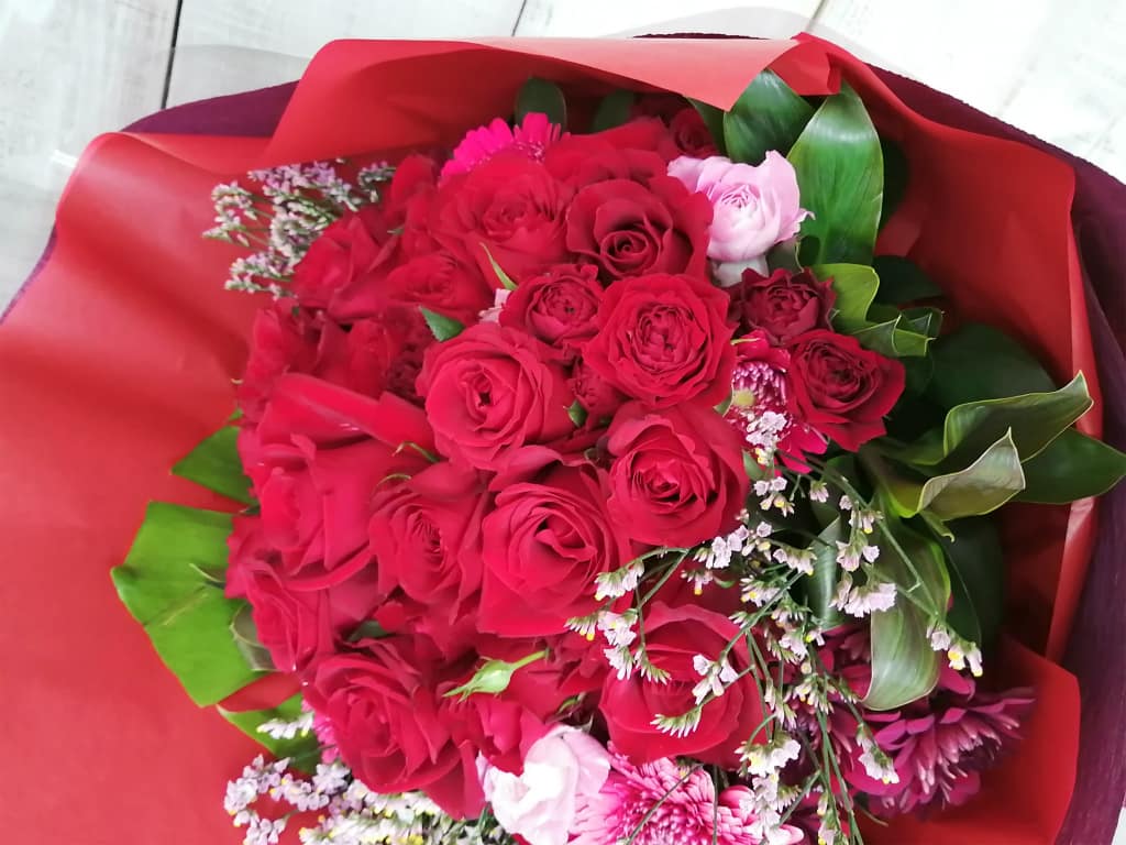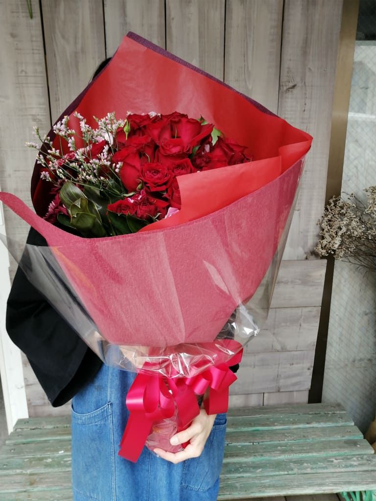 赤バラをメインに大き目に作成いたしました。