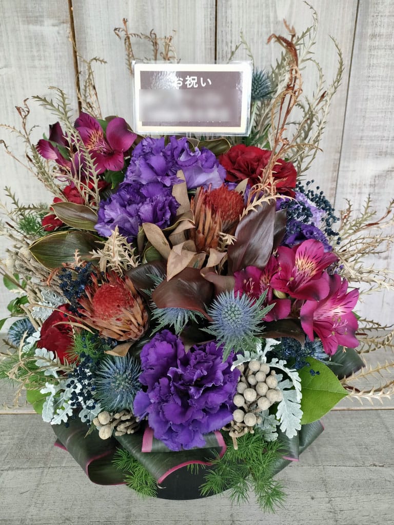 高松シンボルタワー・ホールにお届けした個展開催御祝いのアレンジメントフラワー